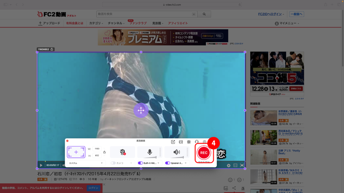 設定が完了すると、「REC」ボタンをクリックします(④)。