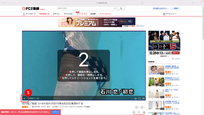 数秒間猶予があるので、動画を再生しましょう(⑤)。