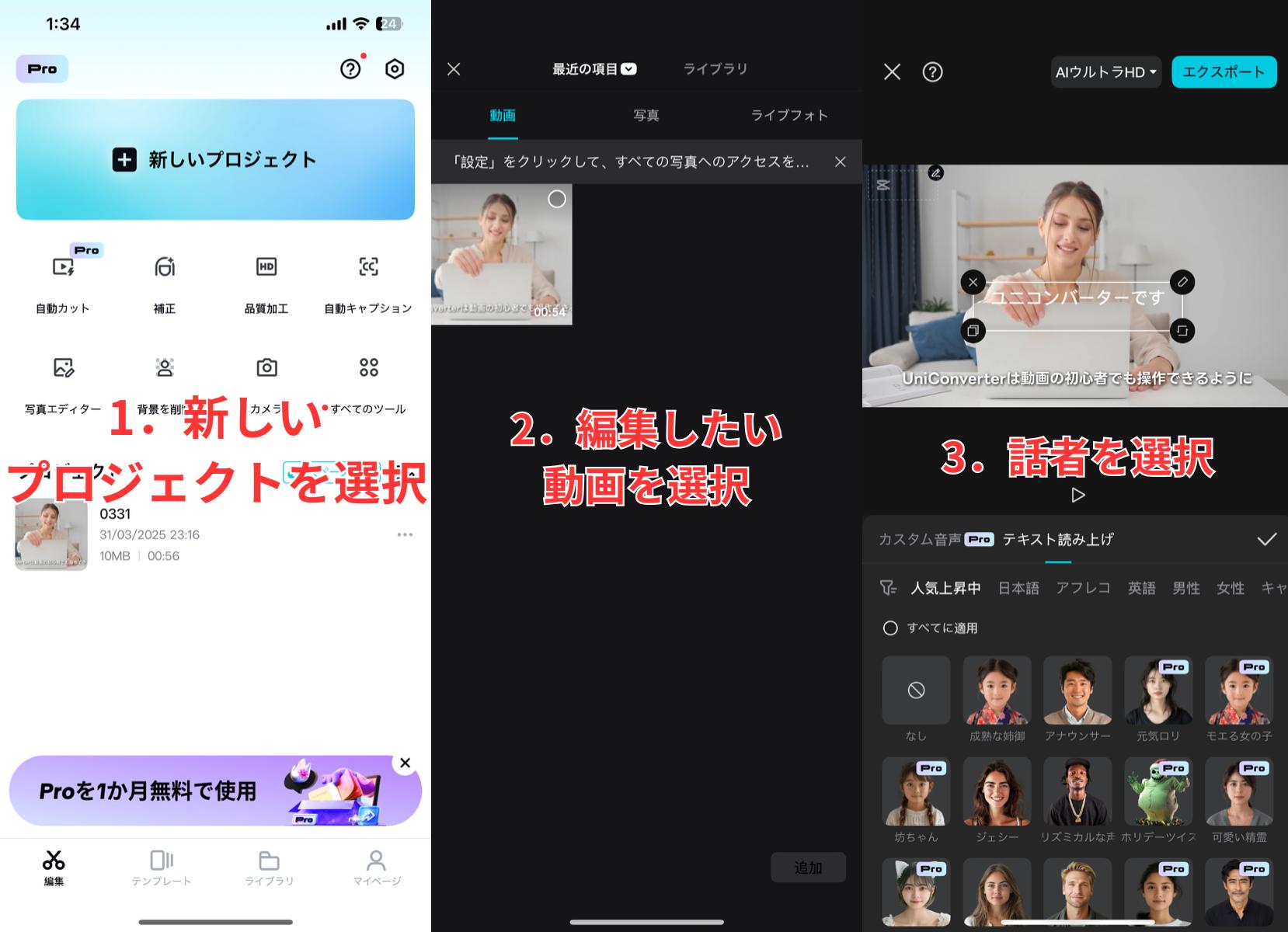 ここでは、Uniconverterを使ったテキスト読み上げ機能を紹介します。