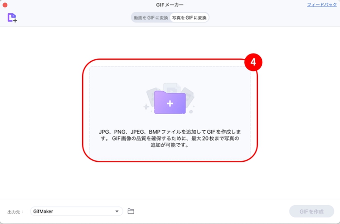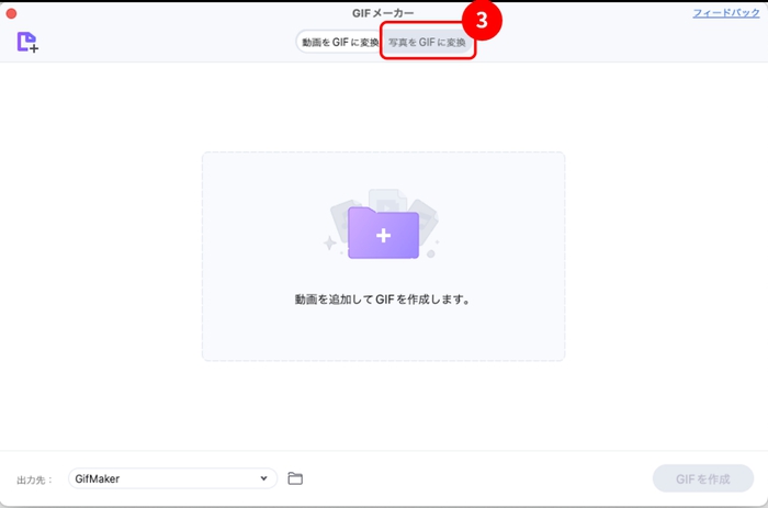 新しいウィンドウが表示されるので、「写真をGIFに変換」をクリックします(③)。