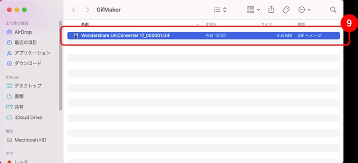すると、動く壁紙(gifアニメ)が出力されます(⑨)。