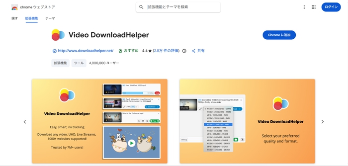 Video DownloadHelperは、YouTubeを含む幅広い動画共有サイトに対応した定番のダウンローダーです。動画を自動検知して保存ボタンを表示してくれるため、直感的に操作できます。