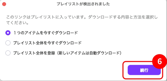 「続行」ボタンをクリックします(⑥)。