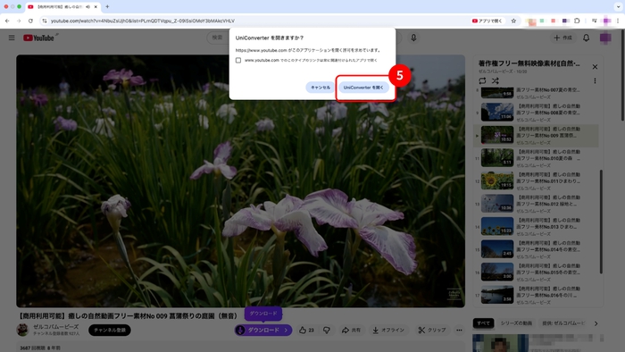 新しいウィンドウが表示されるので、「UniConverterを開く」をクリックしましょう(⑤)。