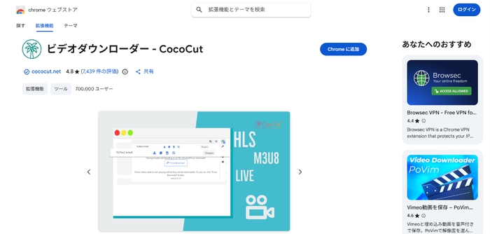 CocoCut Video Downloaderは、MP4やWebMなど複数形式での保存に対応した拡張機能です。ワンクリックで動画を取得できるシンプルなUIが特徴です。